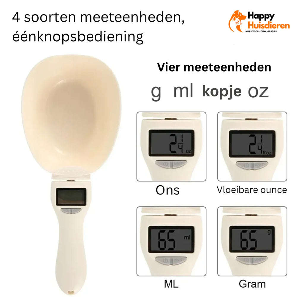 Onze elektronische maatlepel biedt een slimme oplossing voor het precies afmeten van hondenvoer.