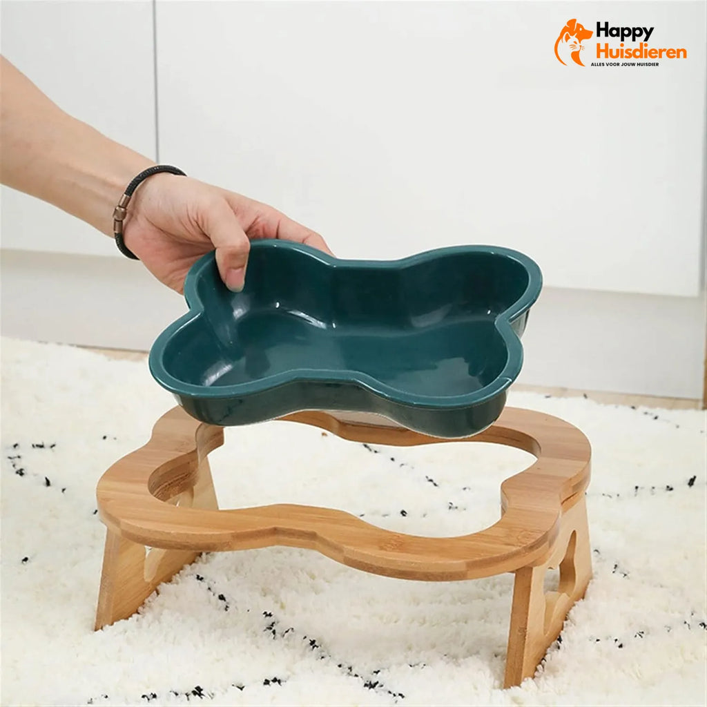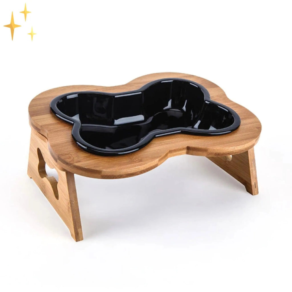 Met hoogwaardig keramiek en een houten basis geniet je hond van elegantie en gemak.
