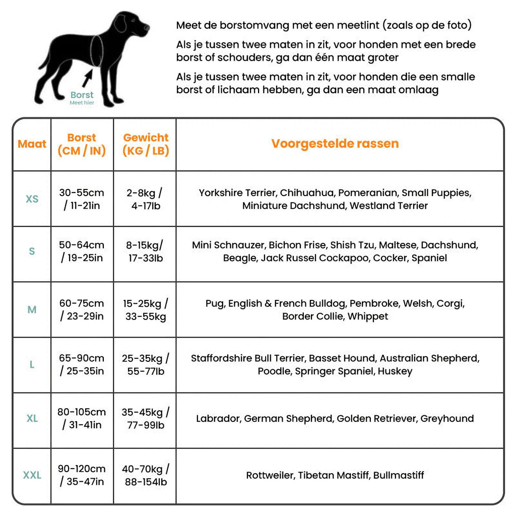 - Perfecte pasvorm – Verstelbare nek- en borstriemen voor iedere hond