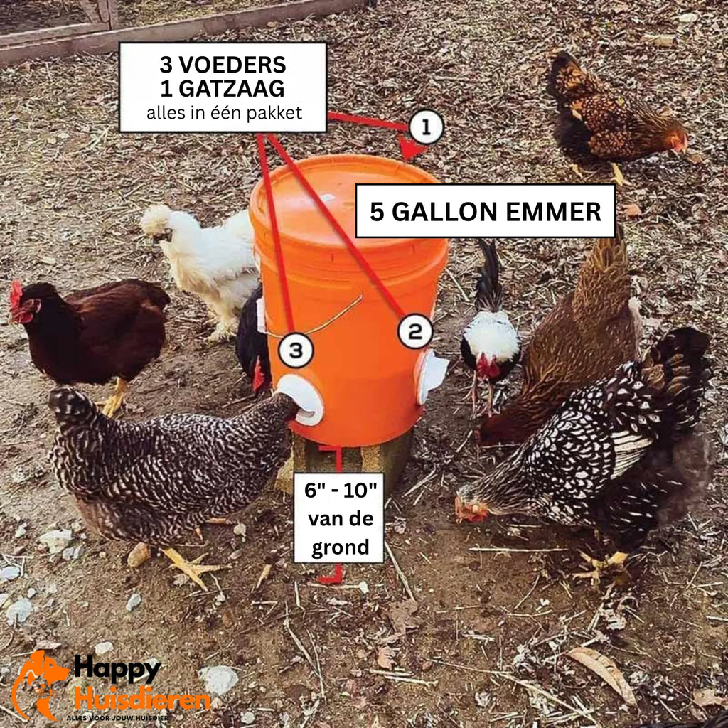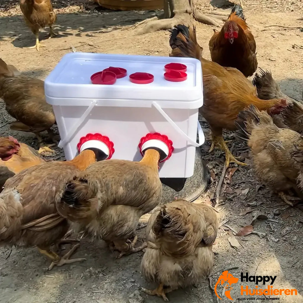 Met de FeedFlow hoef je je nooit meer zorgen te maken over het dagelijks bijvullen van voerbakken. Dit zelfvoorzienende kippenvoerstation werkt volledig op zwaartekracht en zorgt dat jouw kippen altijd toegang hebben tot schoon en droog voer. Ideaal voor pluimveehouders en hobbykippenhouders die gemak, hygiëne en efficiëntie willen combineren.