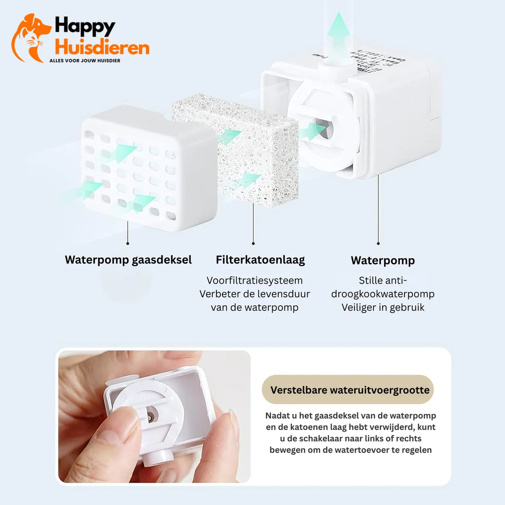 - Compleet geleverd – Inclusief keramische fontein, stille waterpomp en één vervangbaar filter
