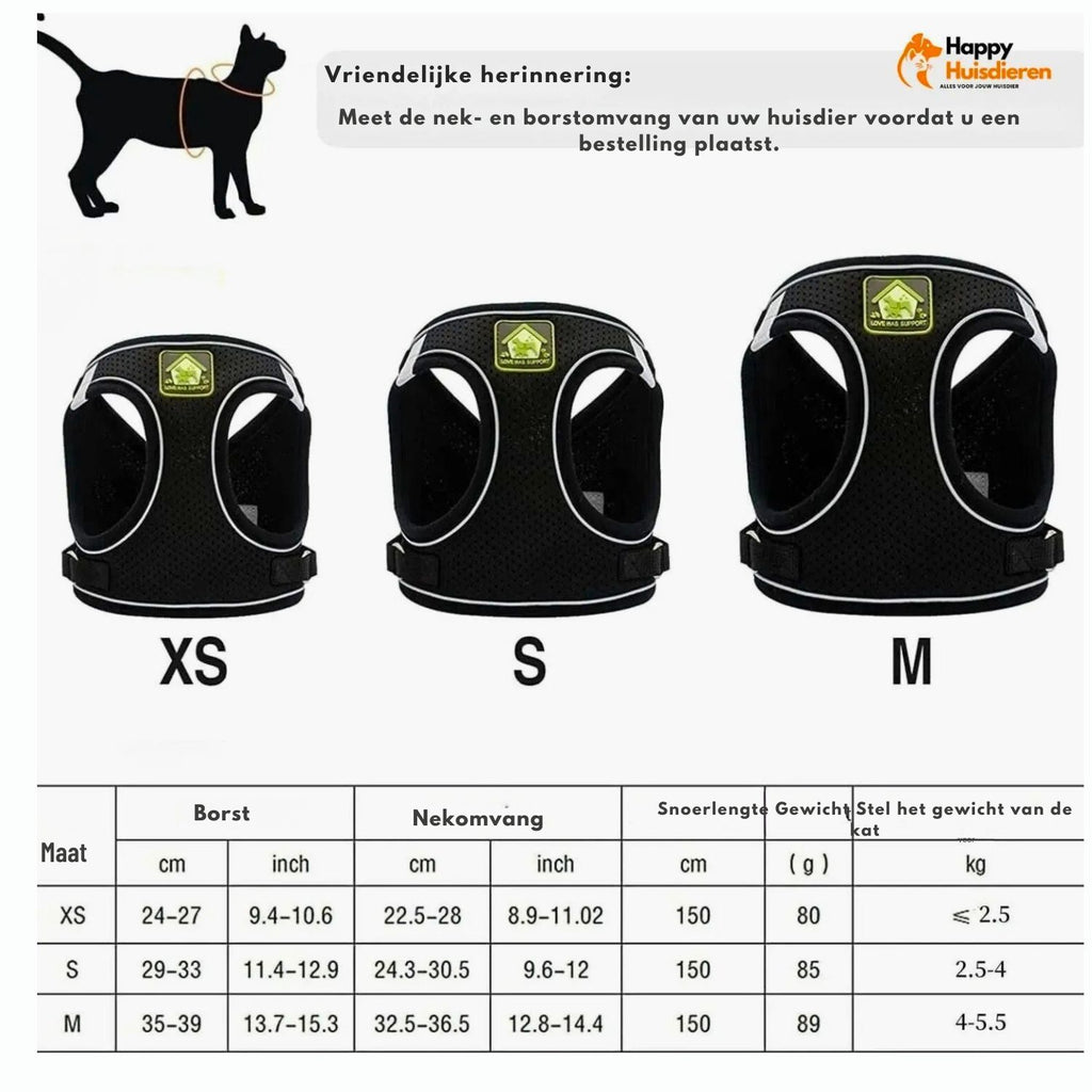 - Ademend en Comfortabel: Dit harnas vormt zich naar het lichaam van je kat, terwijl het ademend materiaal zorgt voor comfort tijdens elk avontuur.