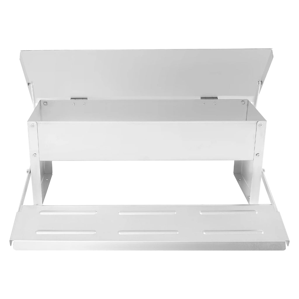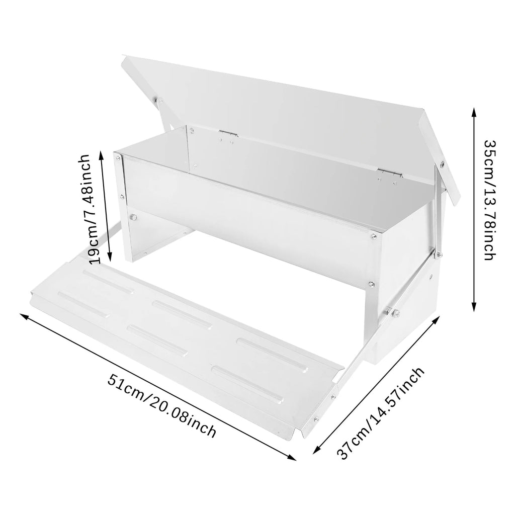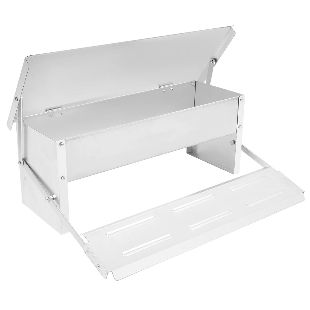 De KippenKrat Voederbak is ontworpen voor het vereenvoudigen van het voerproces. Dankzij het verzinkte staal biedt het langdurige bescherming tegen de elementen. Verkrijgbaar in een stijlvolle zilveren afwerking – perfect voor elke pluimveehouderij.