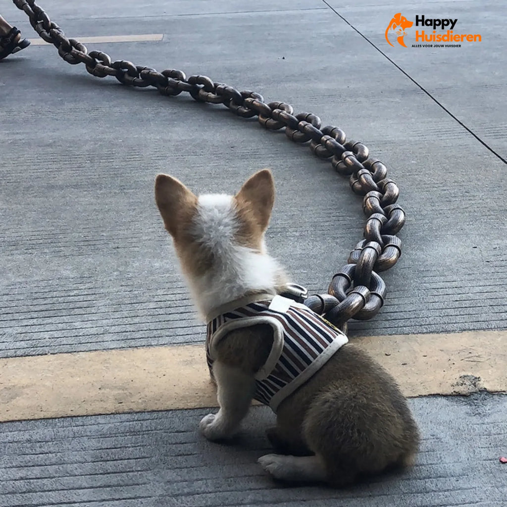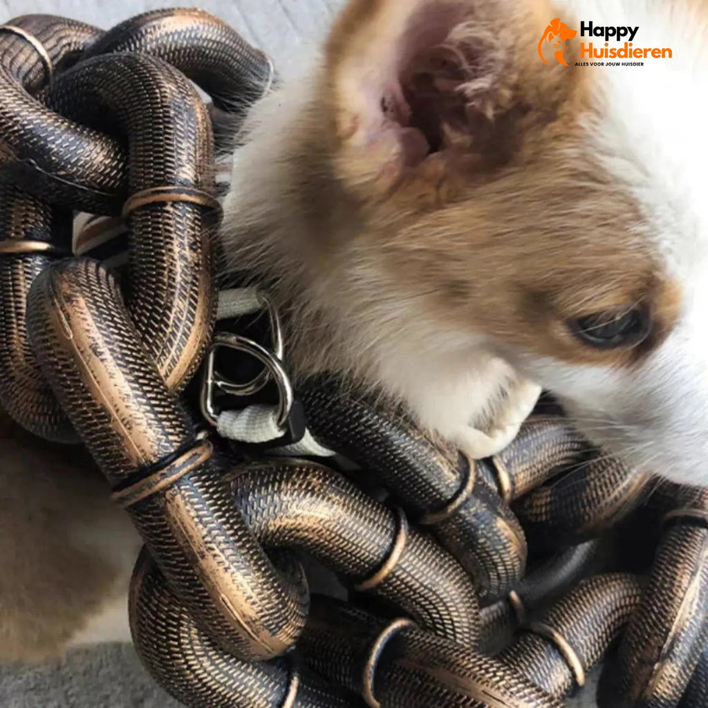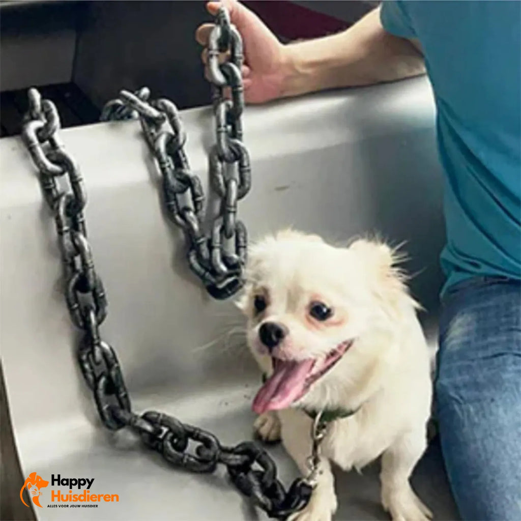 - Speels en opvallend design – Laat je hond opvallen met een riem die eruitziet als een robuuste ketting, zonder extra gewicht