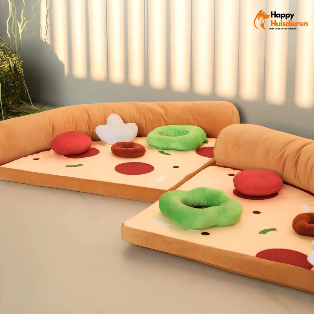 Ons huisdierbed als pizzapunt biedt een slimme oplossing voor ontspanning en spelplezier.
