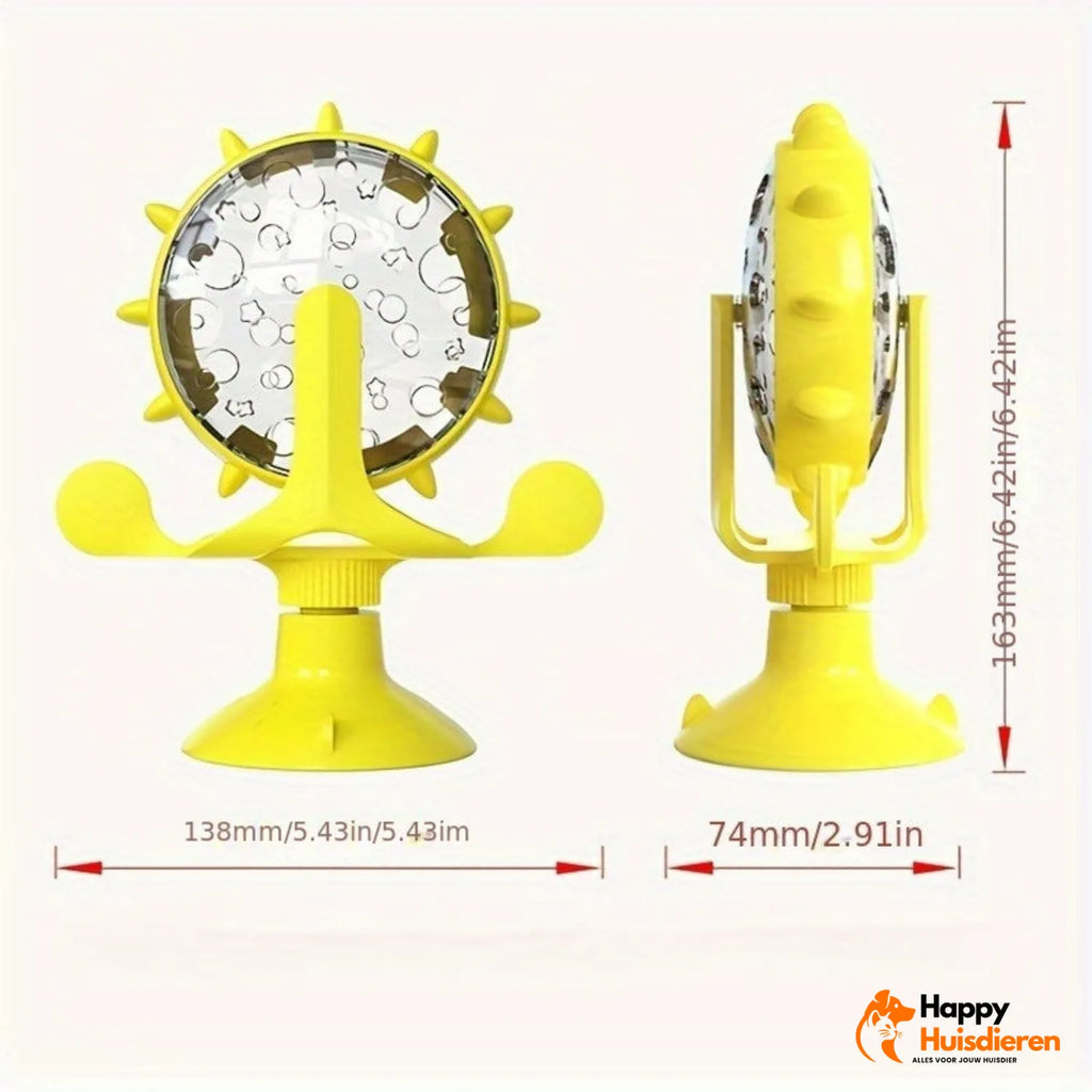 - 360° draai-actie: Roterend wiel met snackopeningen stimuleert jagen, spelen en belonen in één.