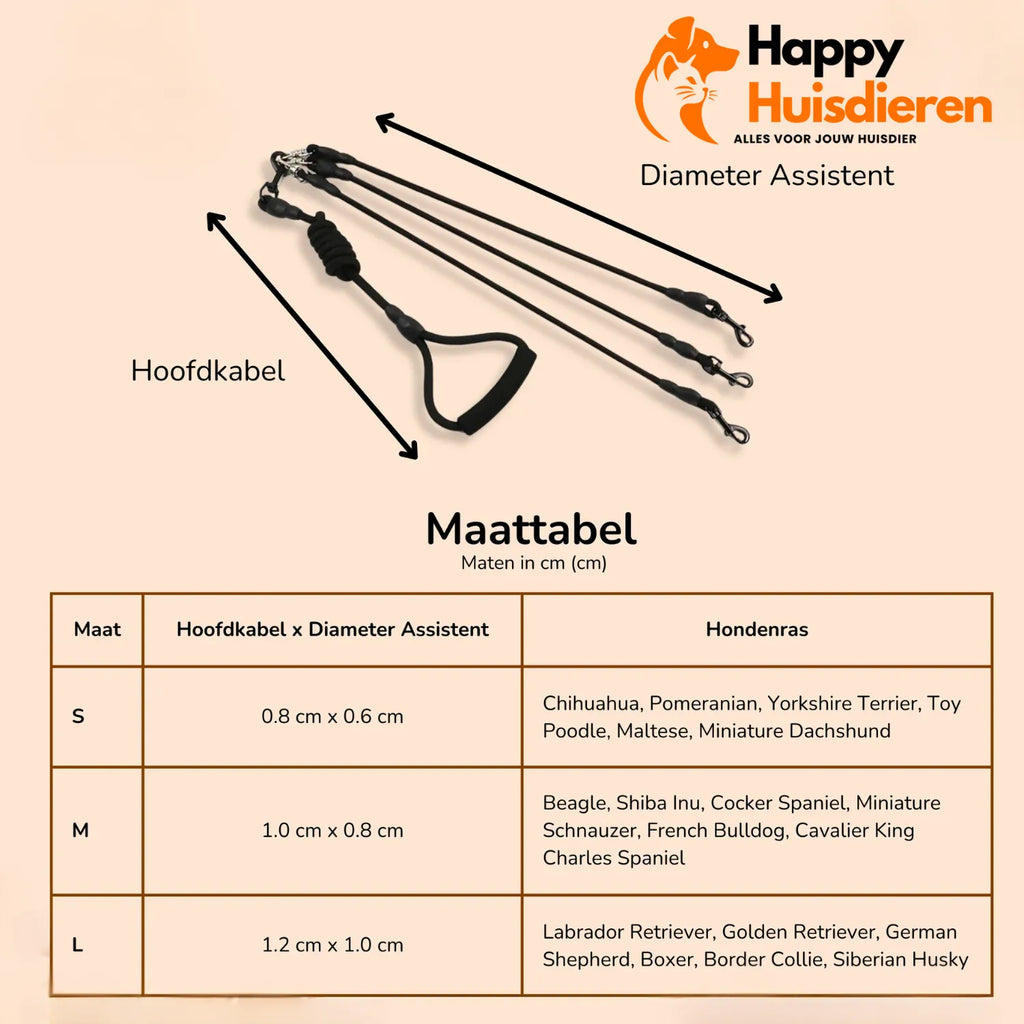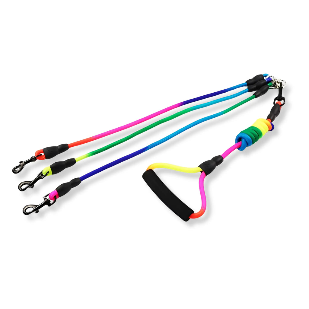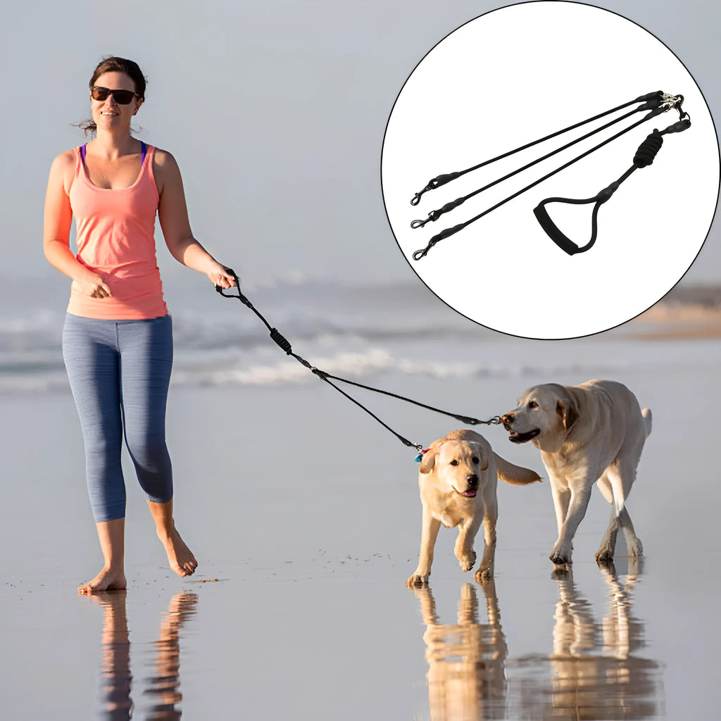 Onze VrijeKnoop hondenriem biedt een slimme oplossing voor wandeluitdagingen met meerdere honden.