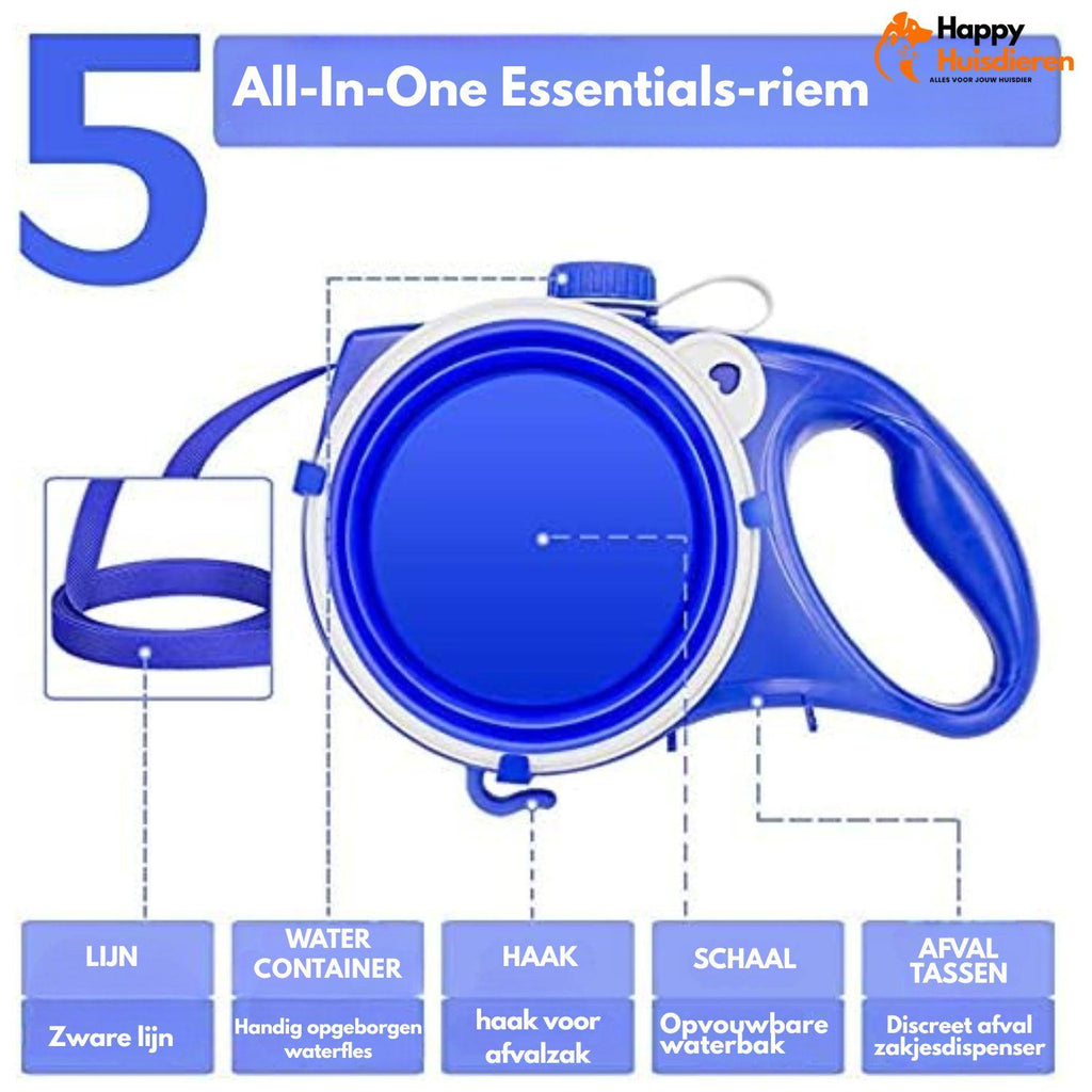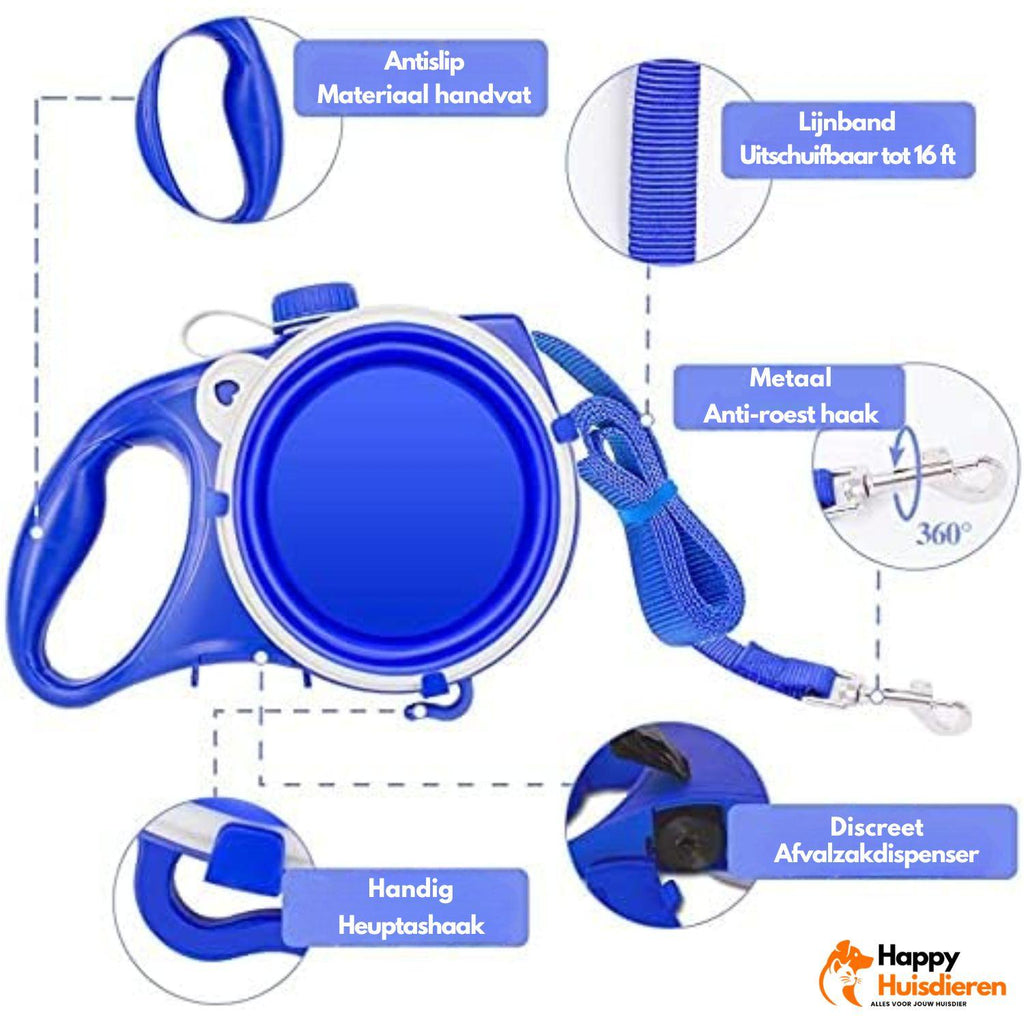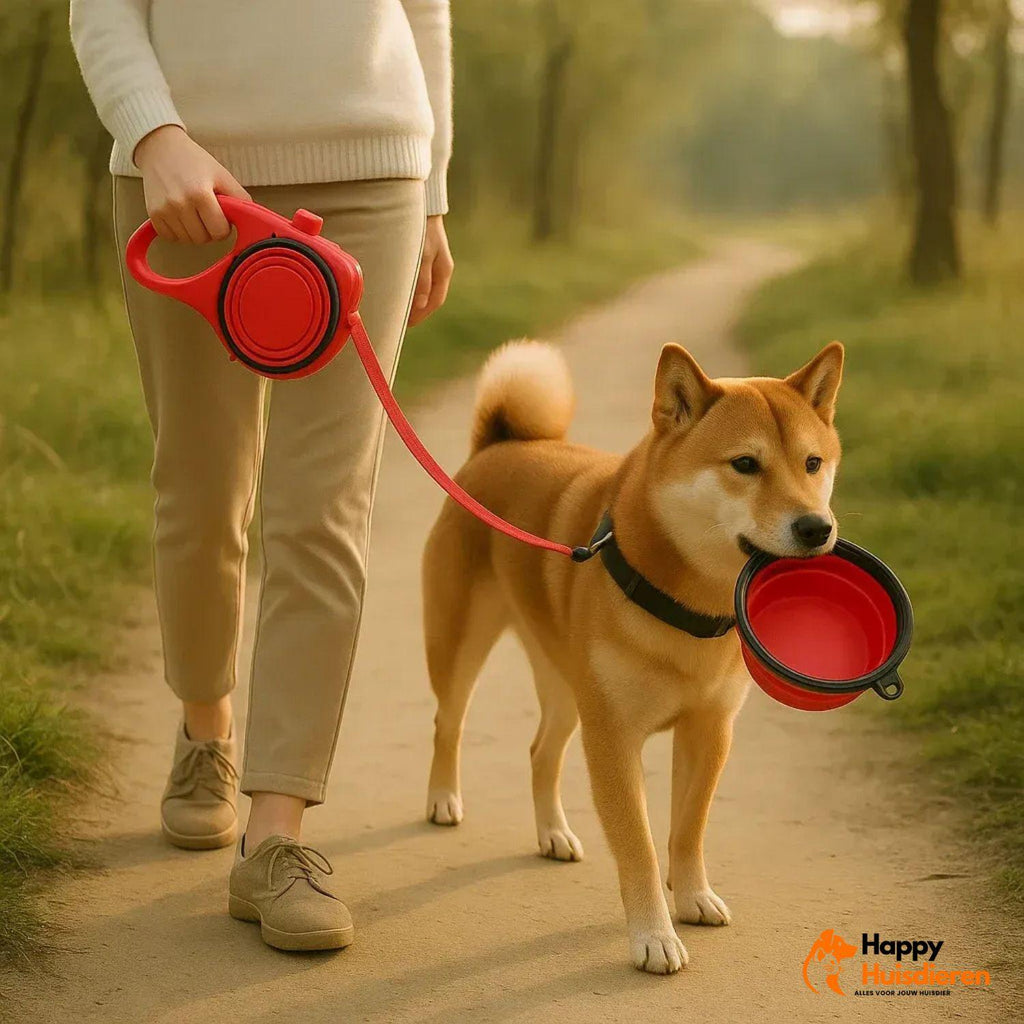 Onze 3-in-1 hondenriem met drinkfles biedt een slimme oplossing voor wandelen, drinken en opruimen onderweg.