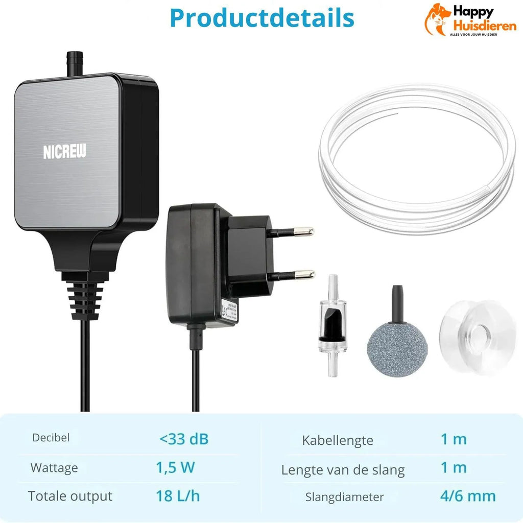 - Volledig Toebehoren: Wordt geleverd met alle nodige accessoires, zoals luchtslang, luchtsteen en handleiding voor eenvoudige installatie.